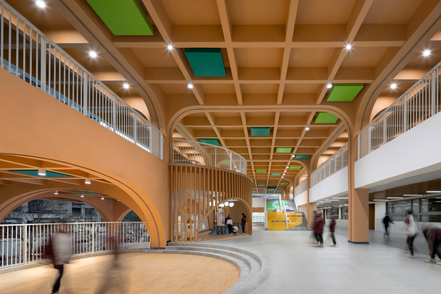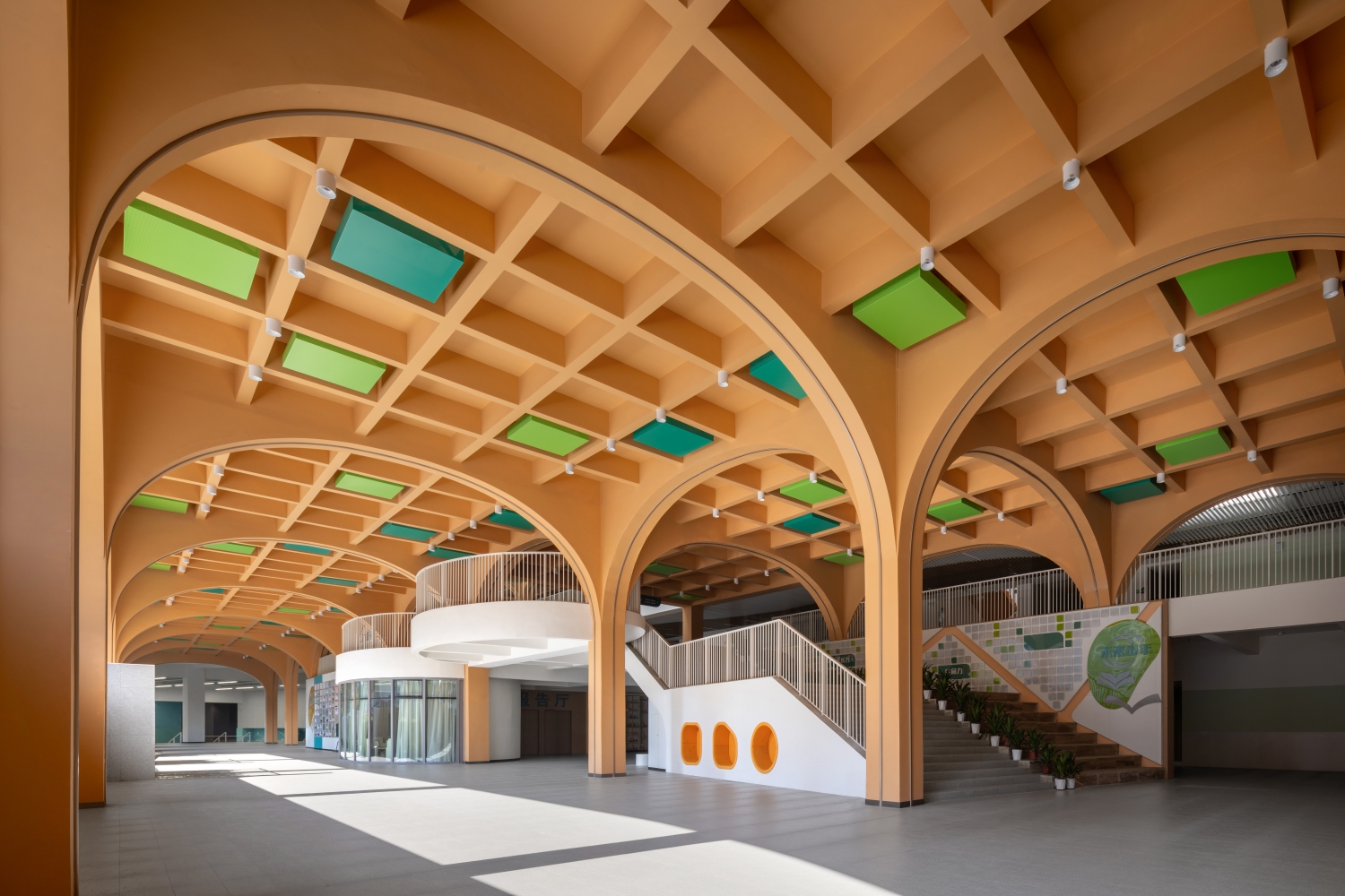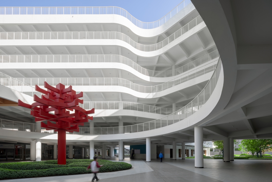 The interior design takes the concept of "vitality seeds," transforming semi-open indoor and outdoor spaces into flexible and dynamic "vitality spaces." Together, they form a vibrant and supportive educational ecosystem where growth happens naturally.