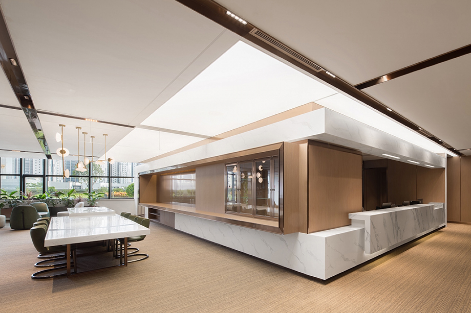 Both the interior design and the landscape design revolve around the concept of "Garden Hospital", from the urban scale to the individual scale, to maximize the distance between people and nature, creating a comfortable and efficient medical environment.